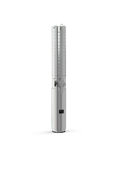 Pompă cu motor submersibil, multietajată, cu racord NEMA 4″ şi rotoare radiale sai semiaxiale, tip constructiv modular. Clapetă de reţinere, integrată. Toate componentele care intră în contact cu fluidul vehiculat sunt rezistente la coroziune.